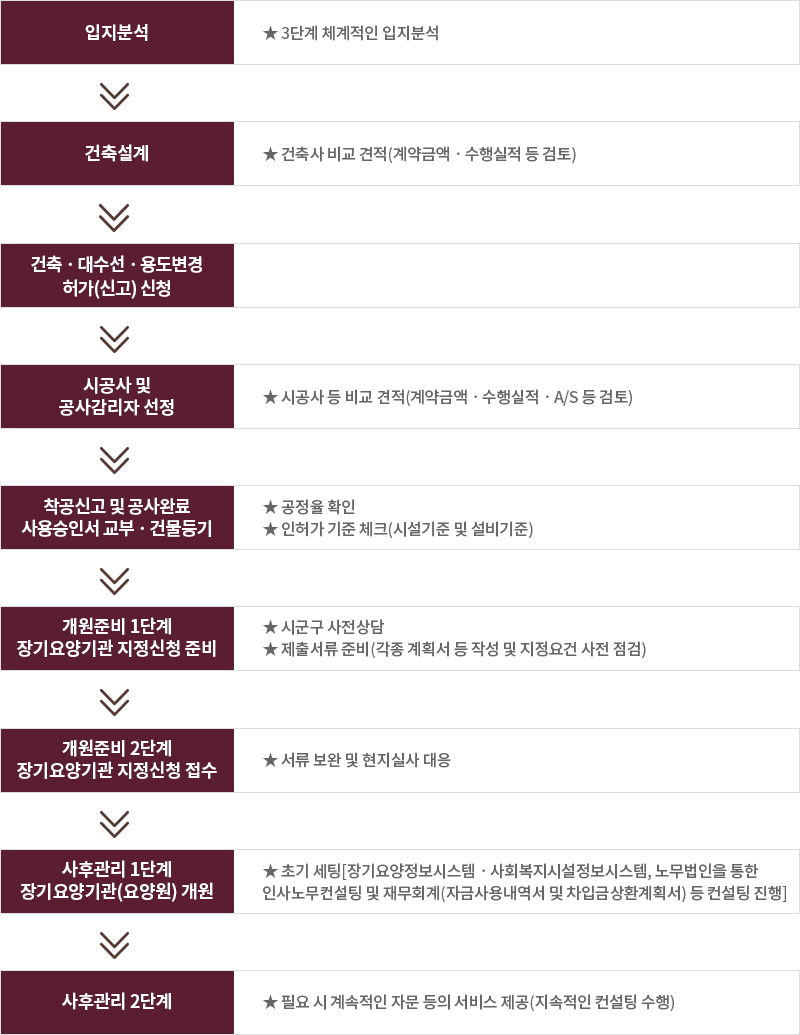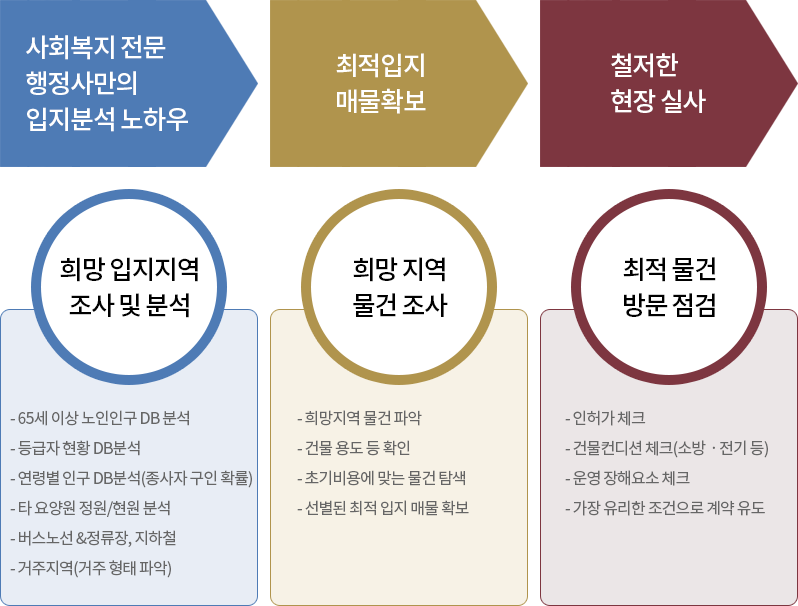입지분석 부터 금융조달지원 컨설팅, 인허가, 사후관리 까지 요양원 창업 관련 토탈서비스 제공!!