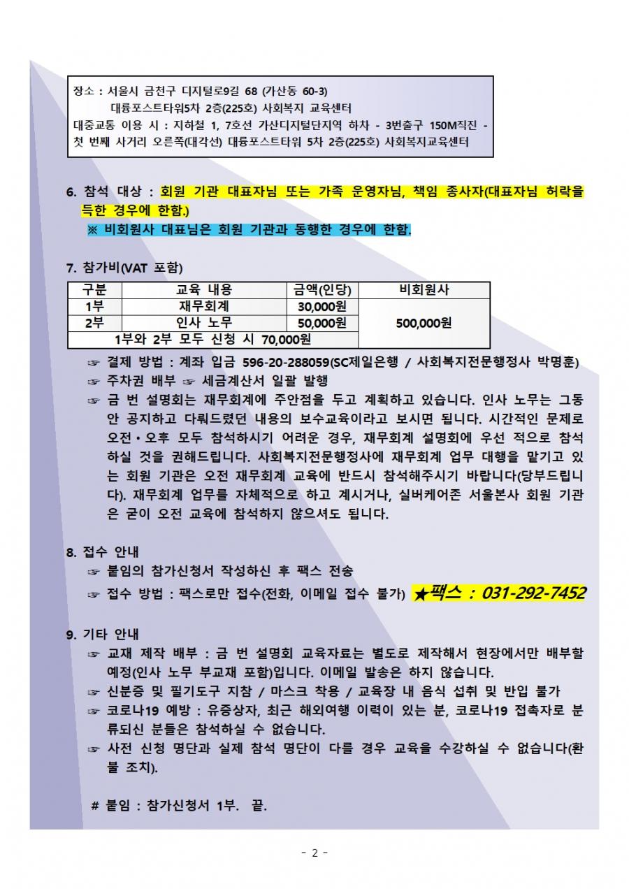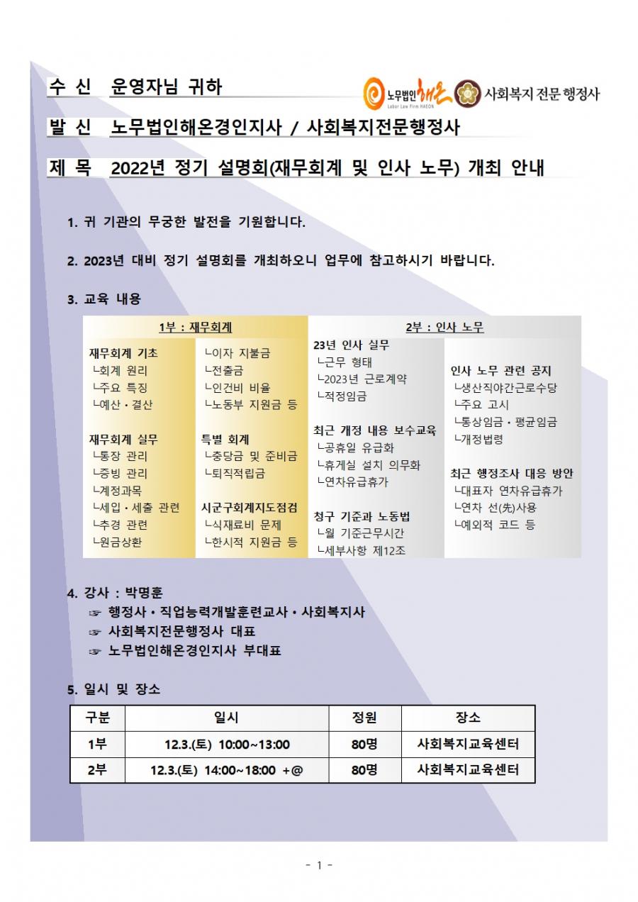 2022년 정기 설명회(재무회계 및 인사 노무) 개최 안내