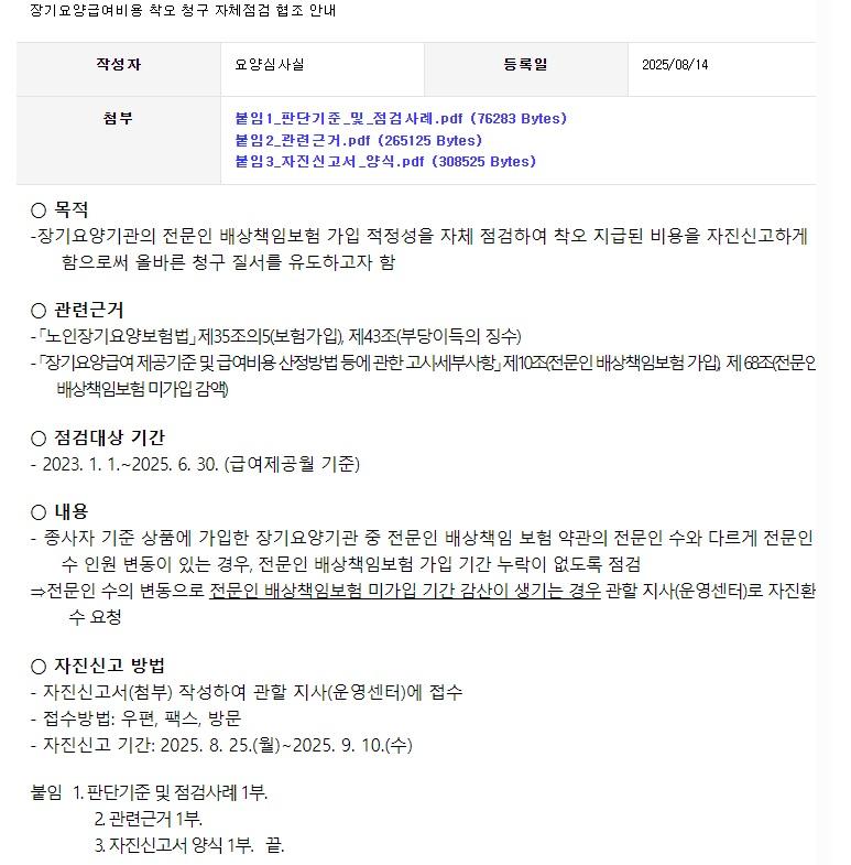 노인장기요양보험 홈페이지 2025.08.14. 공지사항
