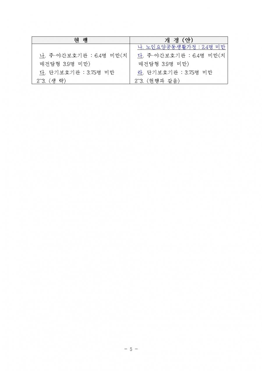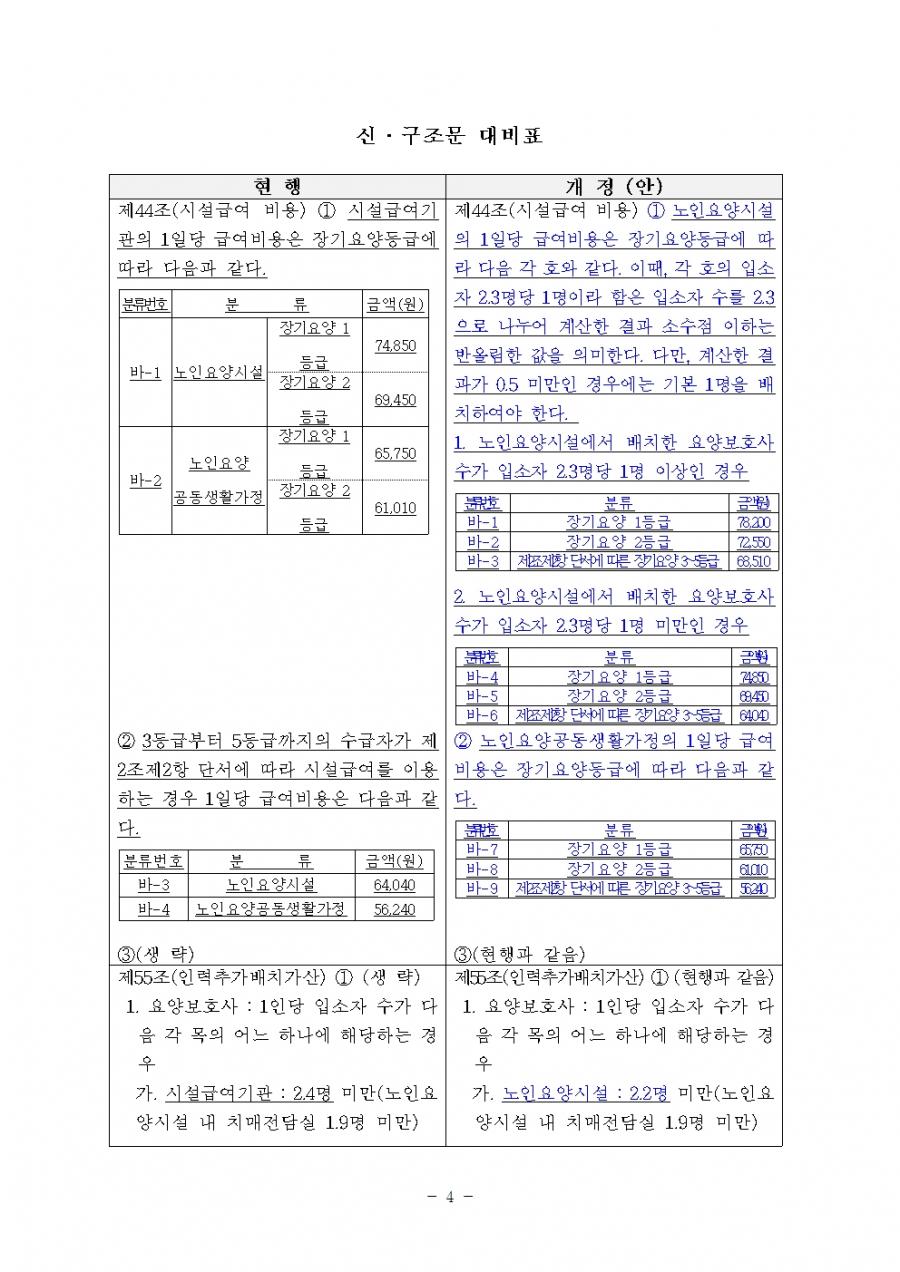 장기요양급여 제공기준 및 급여비용 산정방법 등에 관한 고시 일부개정안
