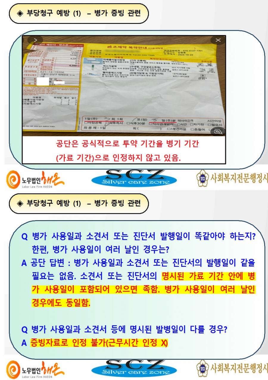 3. 본 행정사는 이 같은 조사를 예상하여 2024.9.12.에 안내 자료(부당청구 예방-병가 증빙 관련)를 배포한 바 있습니다.