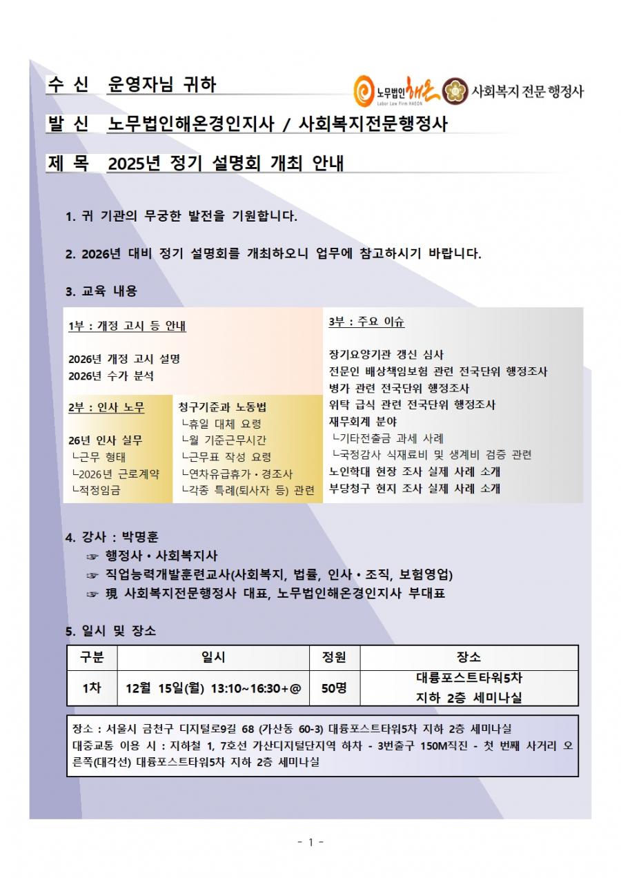 (12월 15일, 월요일)2026년 대비 정기 설명회 개최 안내