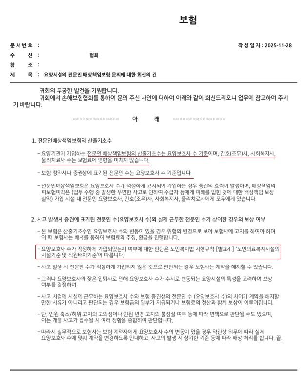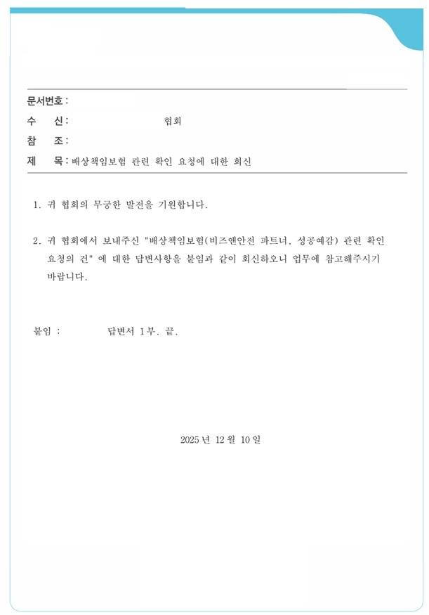 보험 회사에서 협회에 보낸 공문