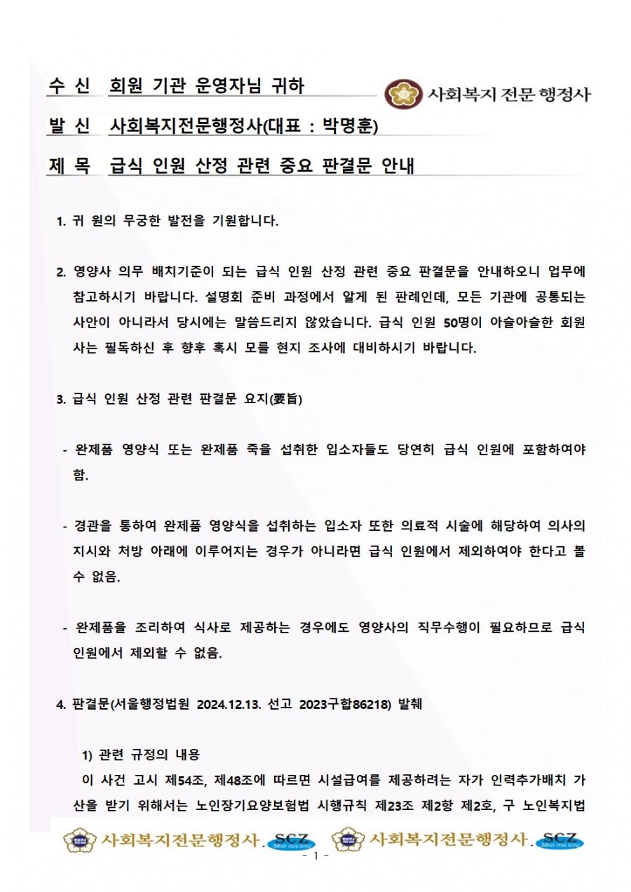 본 공지는 12.26(금).까지만 공지사항에서 확인하실 수 있습니다. 그 이후로는 자료실(사회복지 전문 행정사 회원사 전용)에서 확인 가능합니다. 이메일로도 보내드렸습니다(필독 요망). 감사합니다.