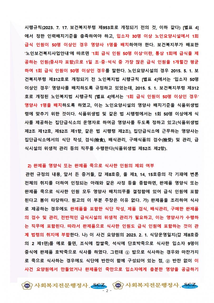 영양사 의무 배치기준이 되는 급식 인원 산정 관련 중요 판결문 안내