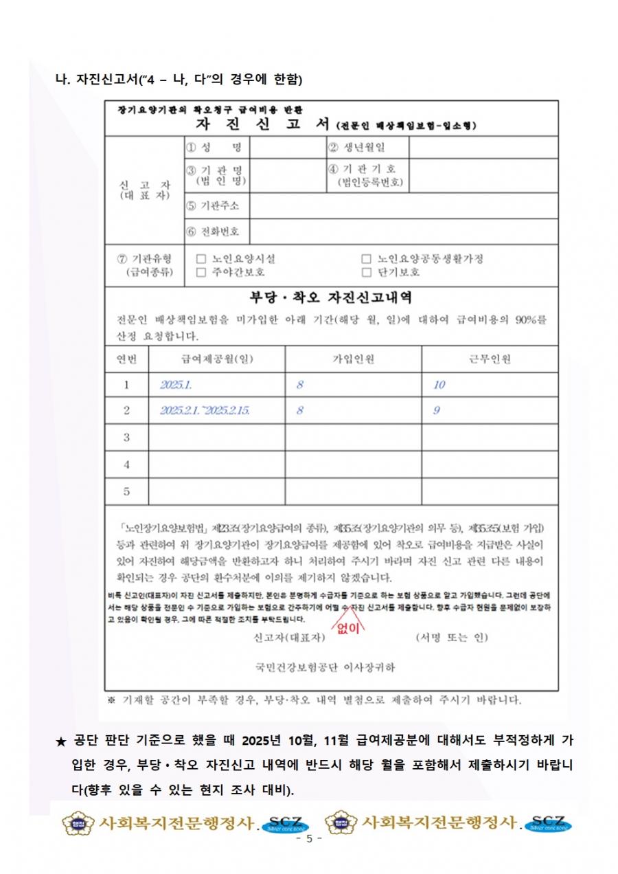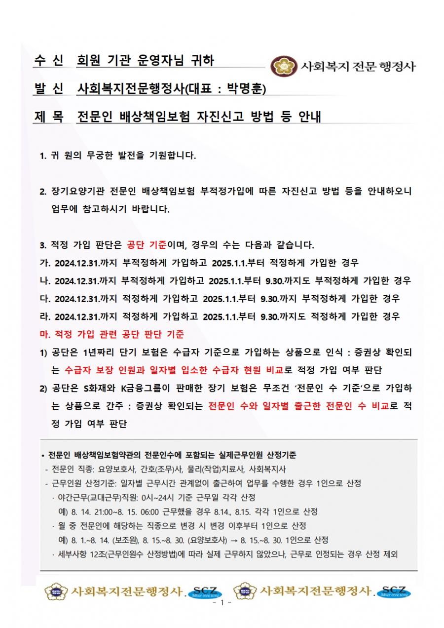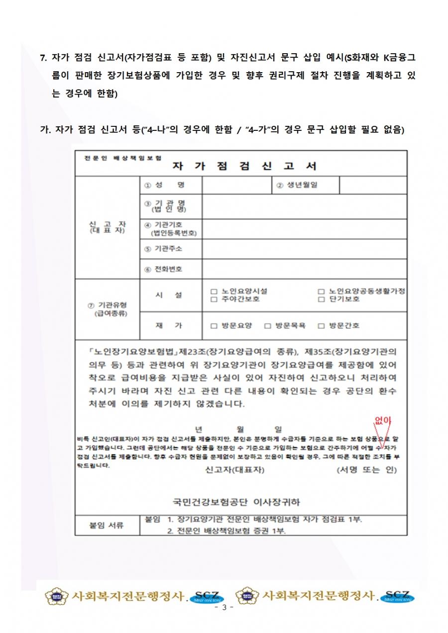 장기요양기관 전문인 배상책임보험 부적정가입에 따른 자진신고 방법 등을 안내하오니 업무에 참고하시기 바랍니다.